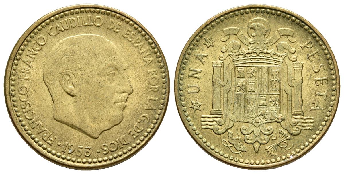 ESTADO ESPAÑOL. 1 Peseta. 1953 *19-61. Madrid. Cal-87. Cu-Al. 3,45g. SC-.