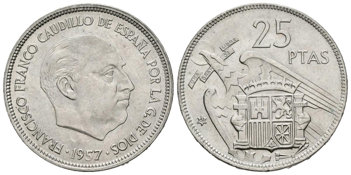 ESTADO ESPAÑOL. 25 Pesetas. 1957 *19-61. Cal-32. 8,33g. Leves marquitas. SC-.