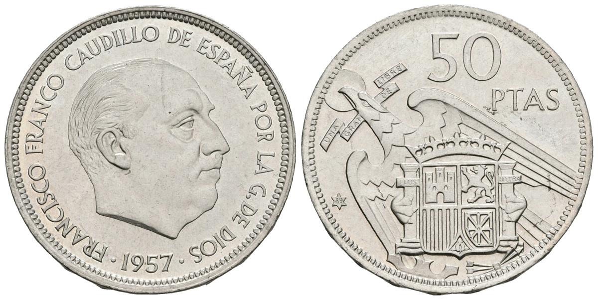 ESTADO ESPAÑOL. 50 Pesetas. 1957 *69. Procedente de tira F.N.M.T. Tirada: 1200 Piezas. Cal-22. 12,47g. PROOF.