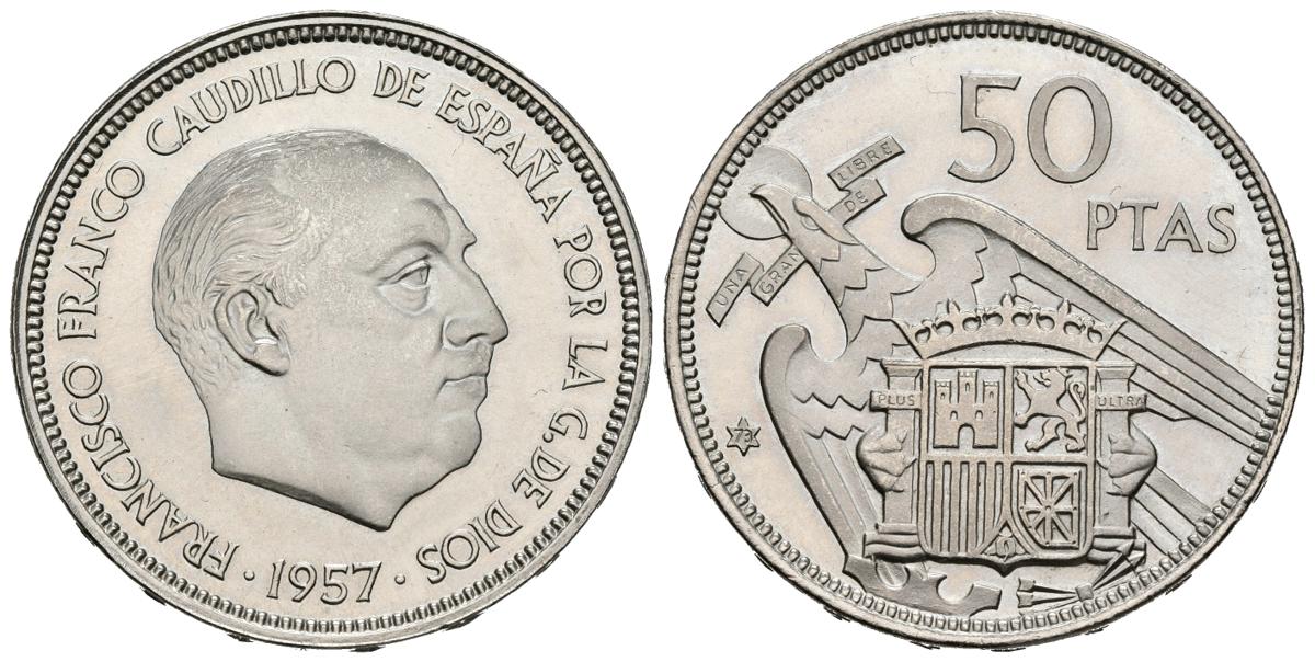 ESTADO ESPAÑOL. 50 Pesetas. 1957 *73. Cal-26. Cu-Ni. 12,61g. PROOF.