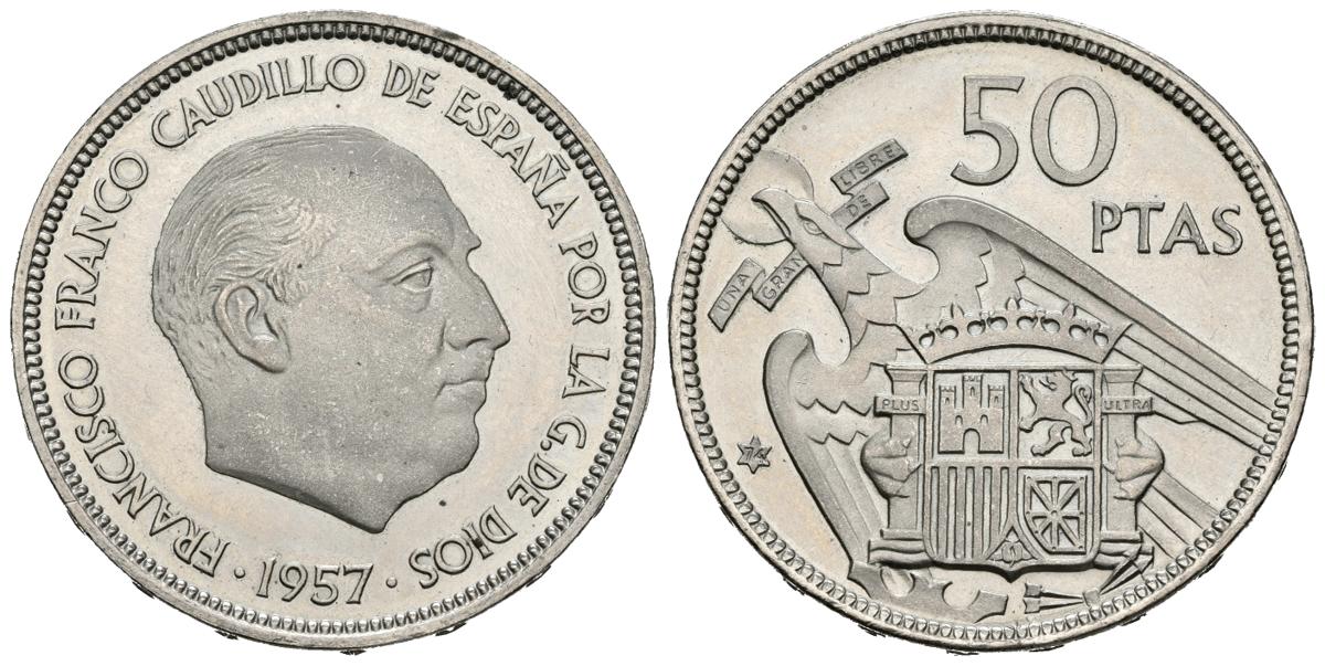 ESTADO ESPAÑOL. 50 Pesetas. 1957 *74. Cal-27. Cu-Ni. 12,62g. Suave pátina. PROOF.