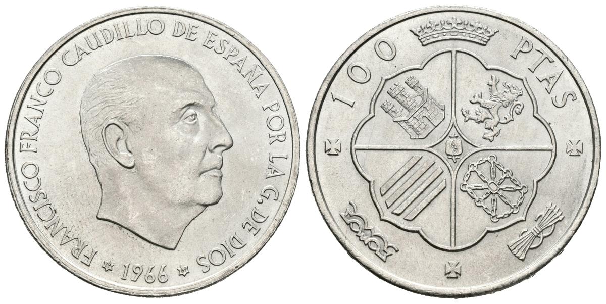 ESTADO ESPAÑOL. 100 Pesetas. 1966 *19-69 (Palo recto). Certificado Gesfon S.L. (2004). Cal-15. Ar. 19,21g. SC-.