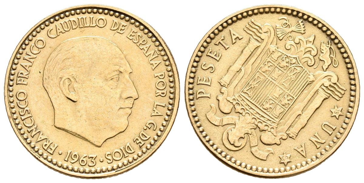 ESTADO ESPAÑOL. 1 Peseta 1963 *19-63. Reverso girado 210º. 3,62g. Limpiada. MBC+.
