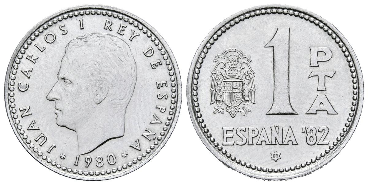 JUAN CARLOS I. 1 Peseta. 1980 * 81. Acuñada sobre cospel de Níquel. JBM-9.3.2var. Ni. 3,52g. EBC. Escasa.