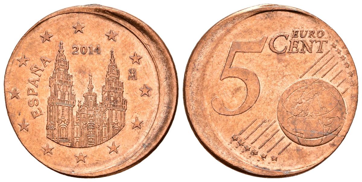 JUAN CARLOS I. 5 Céntimos. 2014. Acuñación desplazada 3mm. 2,96g. SC. Rara.
