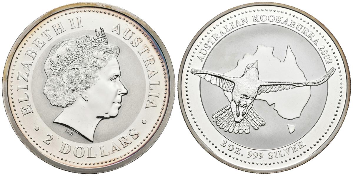 AUSTRALIA. 2 Dollars. 2002. Kookaburra. Km#678. Ar. 62,94g. Ligero tono. PROOF.
