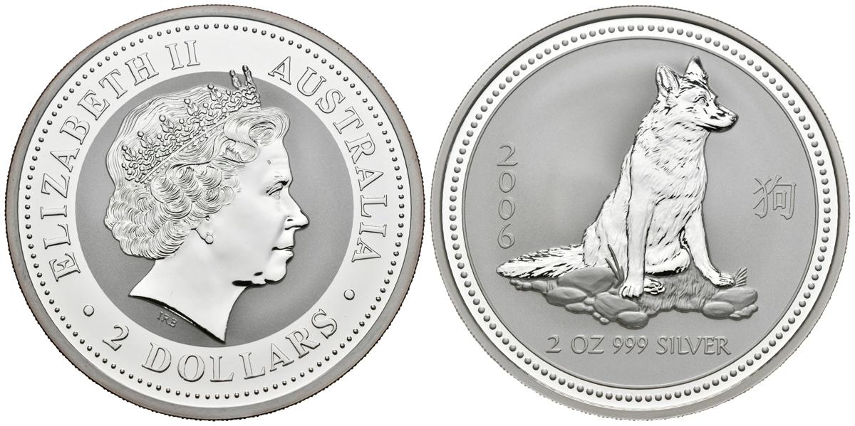 AUSTRALIA. 2 Dollars. Año lunar "Lobo". 2006. Ar. 63,01g. Presentada en cápsula original. PROOF.