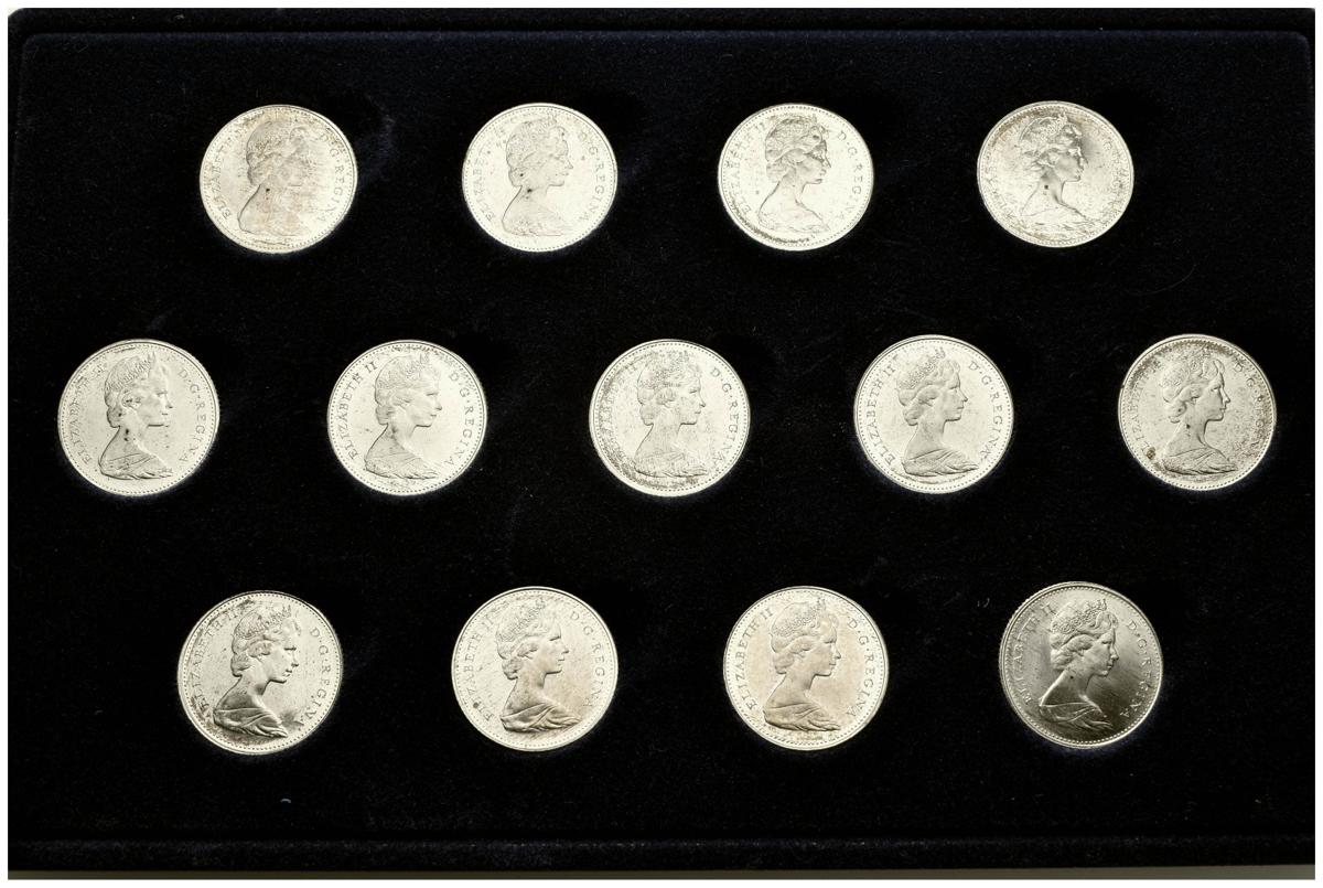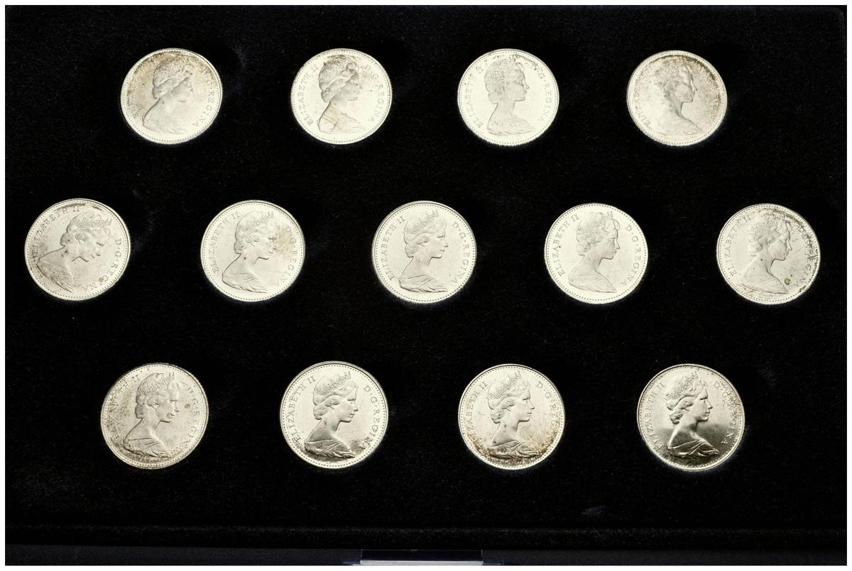CANADA. 10 Cent. 1968. 2 juegos de 13 monedas (arras) presentadas en estuche. Km#72. Ar. SC.