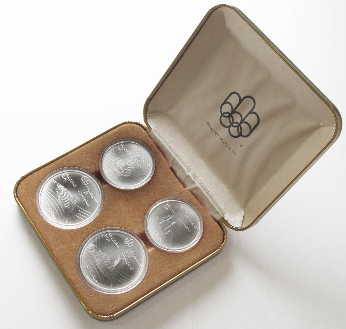 CANADA. 5 y 10 Dollars (2). 1976. Olimpiadas de Montreal. Edificios. Ar. Presentdo en estuche oficial con certificado. PROOF.