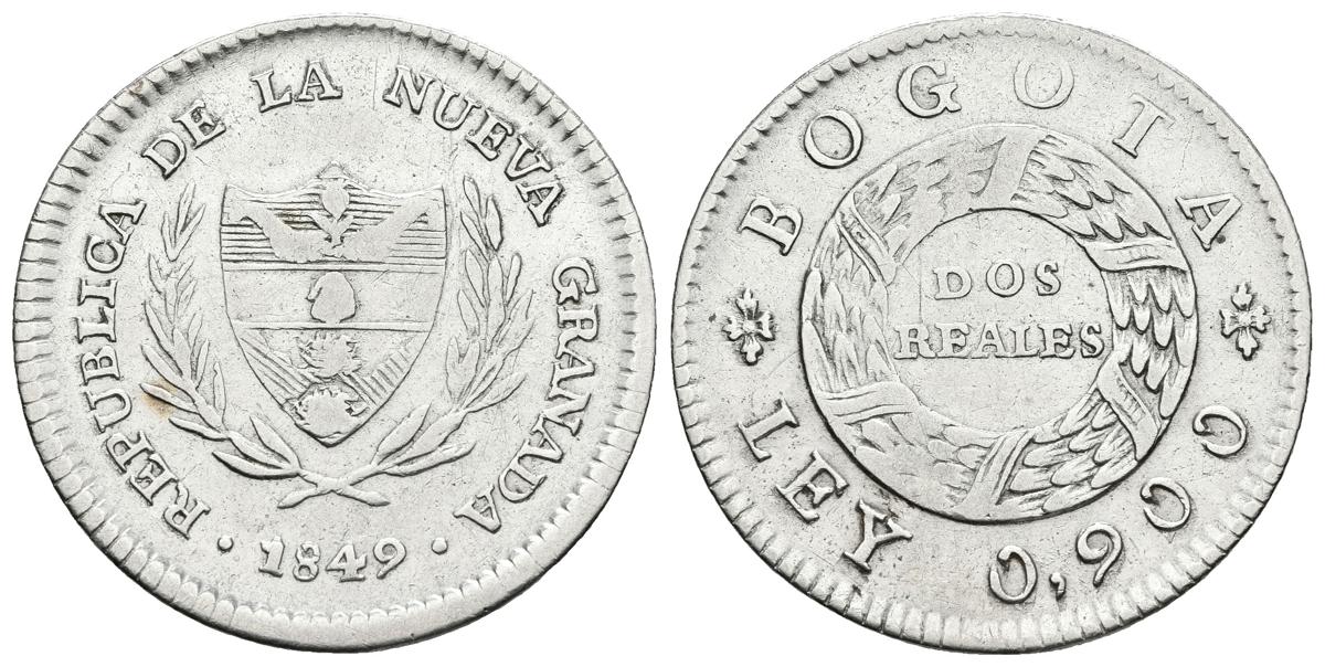 COLOMBIA, Nueva Granada. 2 Reales. 1849. Bogotá. Km#105; Restrepo 190.5. Ar. 4,88g. MBC.