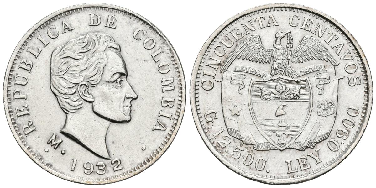 COLOMBIA. 50 Centavos. 1932. Km#193.2. Ar. 12,50g. Marquita en el canto. MBC+.