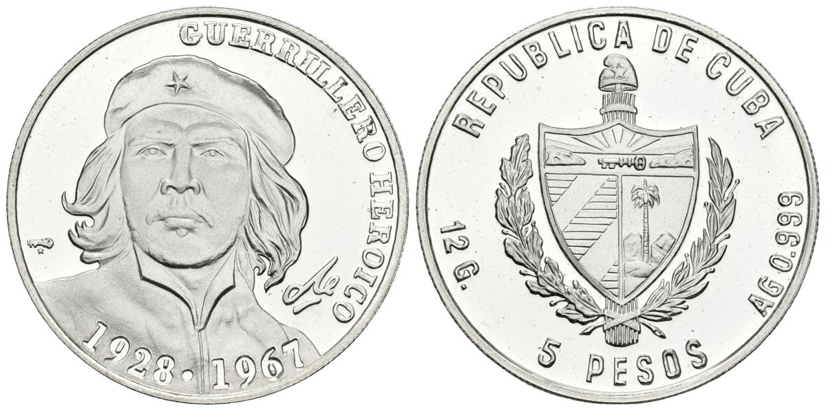 CUBA. 5 Pesos. 1967. 20º Aniversario del fallecimiento de Ernesto Che Guevara. Km#159. Ar. 12,00g. PROOF. Presentada en encapsulado oficial.