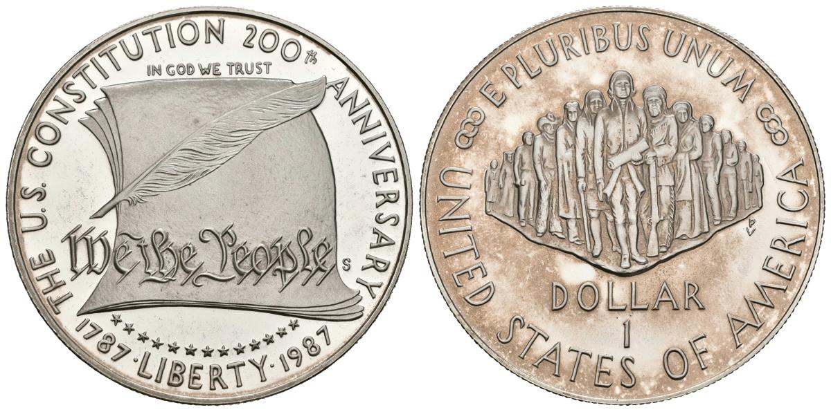 ESTADOS UNIDOS. 1 Dollar. 1987. Bicentenario de la Constitución de 1787. Km#220. Ar. Presentada en estuche oficial con certificado. PROOF.