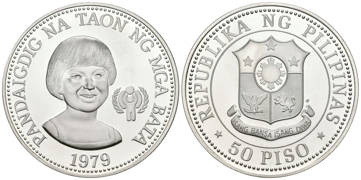 FILIPINAS. 50 Piso. 1979. Año internacional del niño. Km#229. Ar. Presentado en estuche oficial. PROOF.