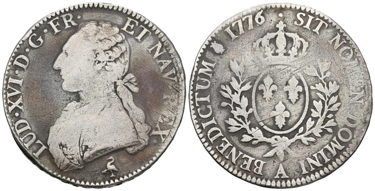 FRANCIA. Luis XVI. 1/10 Ecu. 1776. París A. Gadoury 353. Ar. 28,34g. BC-.