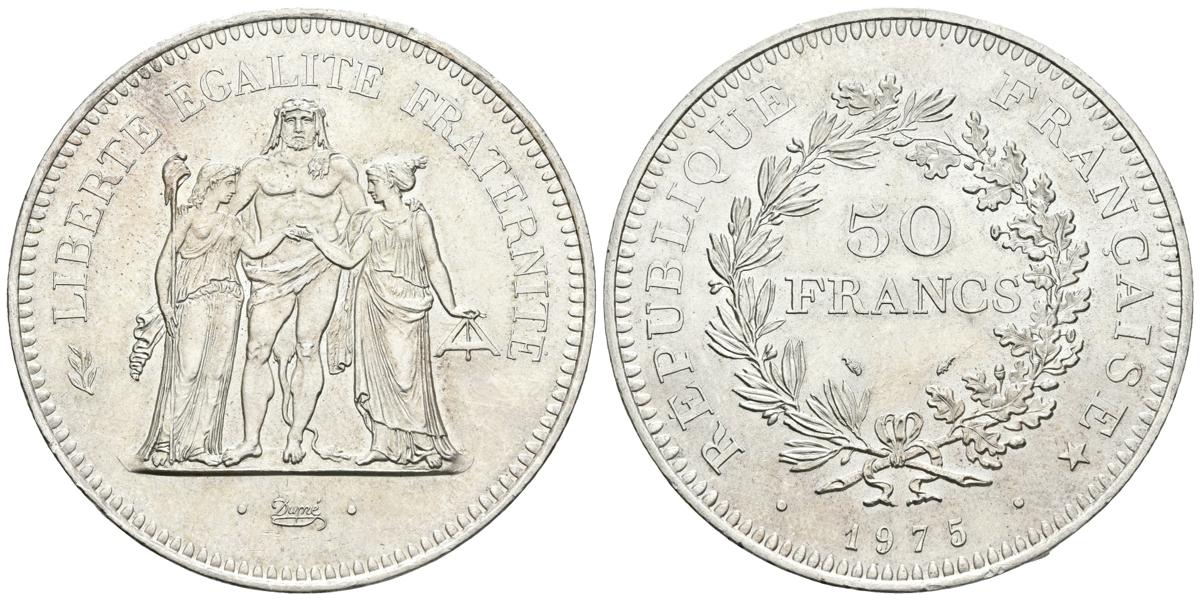 FRANCIA. 50 Francs. 1978. Km#941. Ar. 30,18g. Golpecito en el canto. SC-.