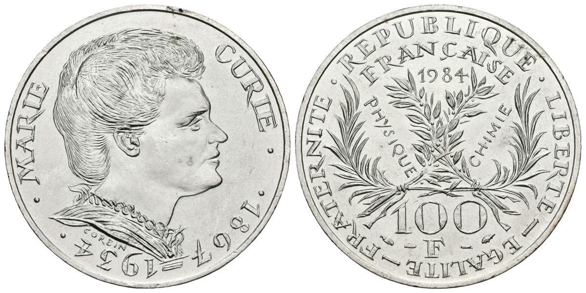 FRANCIA. 100 Francs. 1984. Marie Curie 1867-1934. Gad. 899. Ar. 15,01g. SC.
