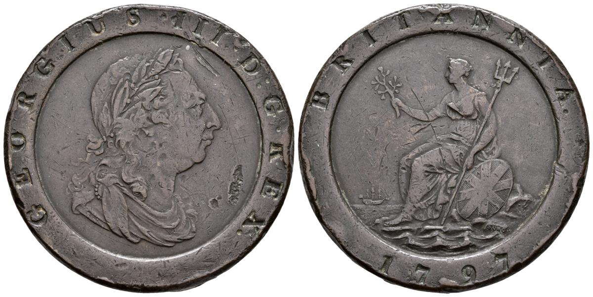 GRAN BRETAÑA. George III. 1 Penny. 1797. km#618. Ae. 56,13g. Golpes. MBC.