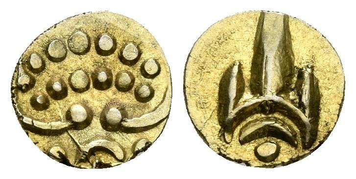 INDIA. Tanjore Maratha. 1 Fanam. (1878-1800). A/ León estilizado. R/ Daga. Km#368. Au. 0,31g. EBC.