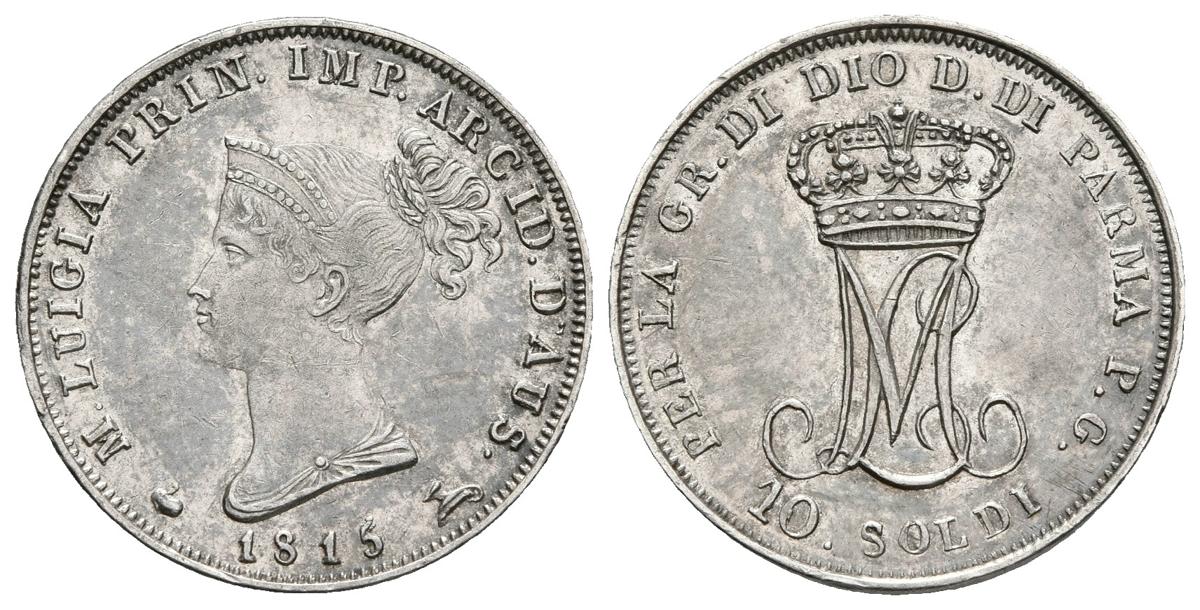 ITALIA. Maria Luigia. 10 Soldi. 1815. Parma. Pag. 10; Mont. 120. Ar. 2,48g. MBC+.