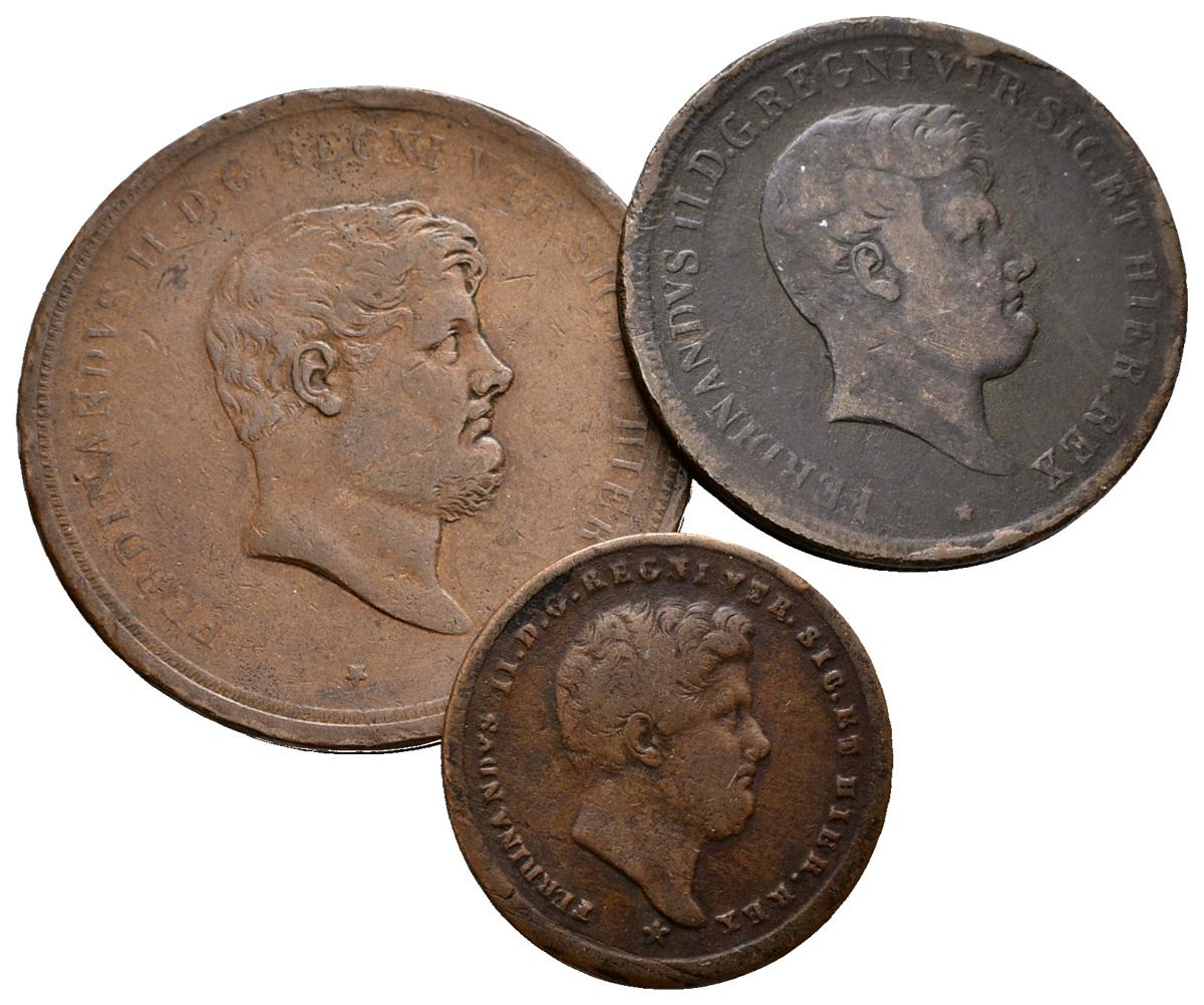 ITALIA. Fernando II. 2, 5 y 10 Tornesi. 1858, 1849 y 1851. Nápoles. Km#374, Km#371a y Km#148b. Ae. BC+/MBC-.