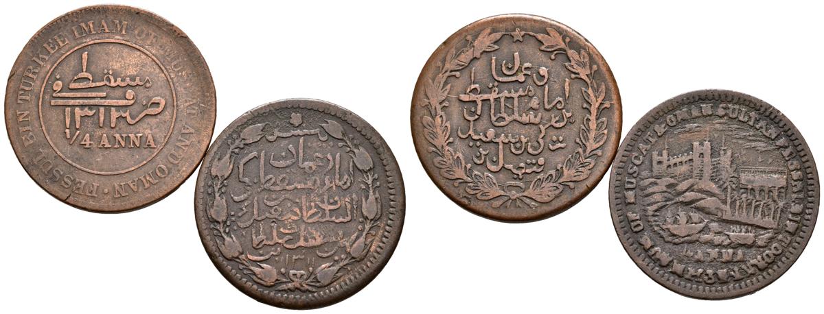 MUSCAT & OMAN. 1/4 Anna. 1311H y 1312H. Km#2 y Km#6. Ae. MBC.