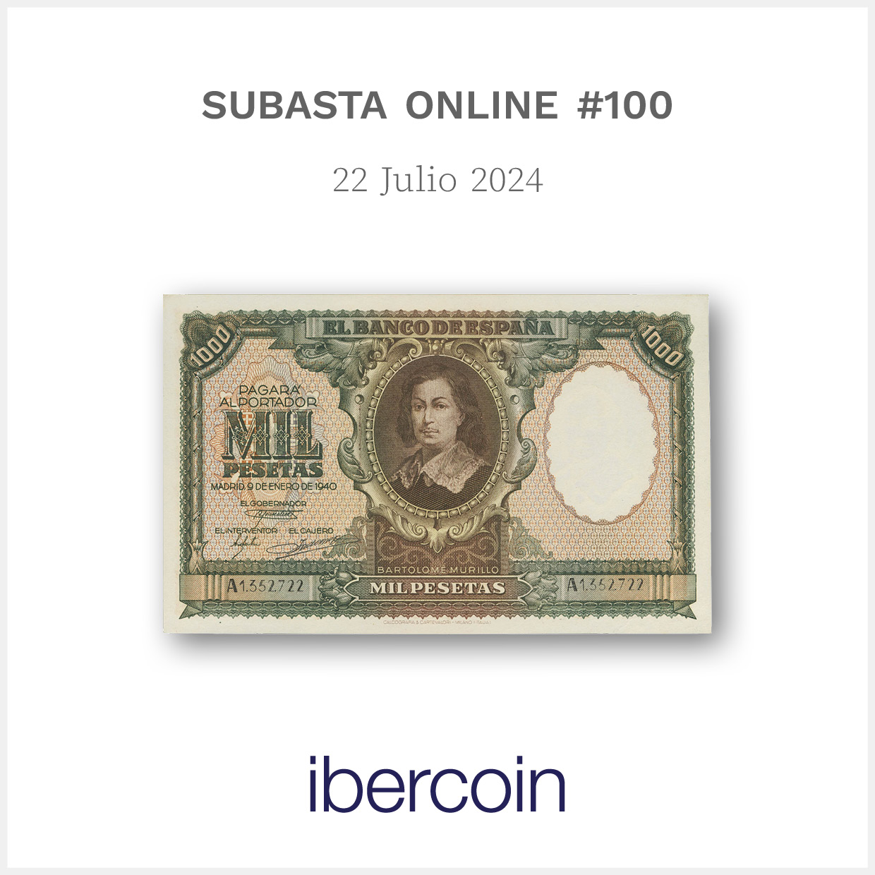 100 Pesetas. January 1, 1884. No series. (Edifil 2023: 284, Pick: 26). Very rare, especially without repairs, imperceptible needle points, matches the one photographed in the Edifil catalogue. Very Fine. PMG20 encapsulation.
