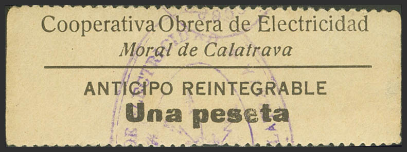 MORAL DE CALATRAVA (CIUDAD REAL). 1 Peseta. (1937ca). Refundable advance. (González: not mentioned). Extremely rare. Good Very Fine.