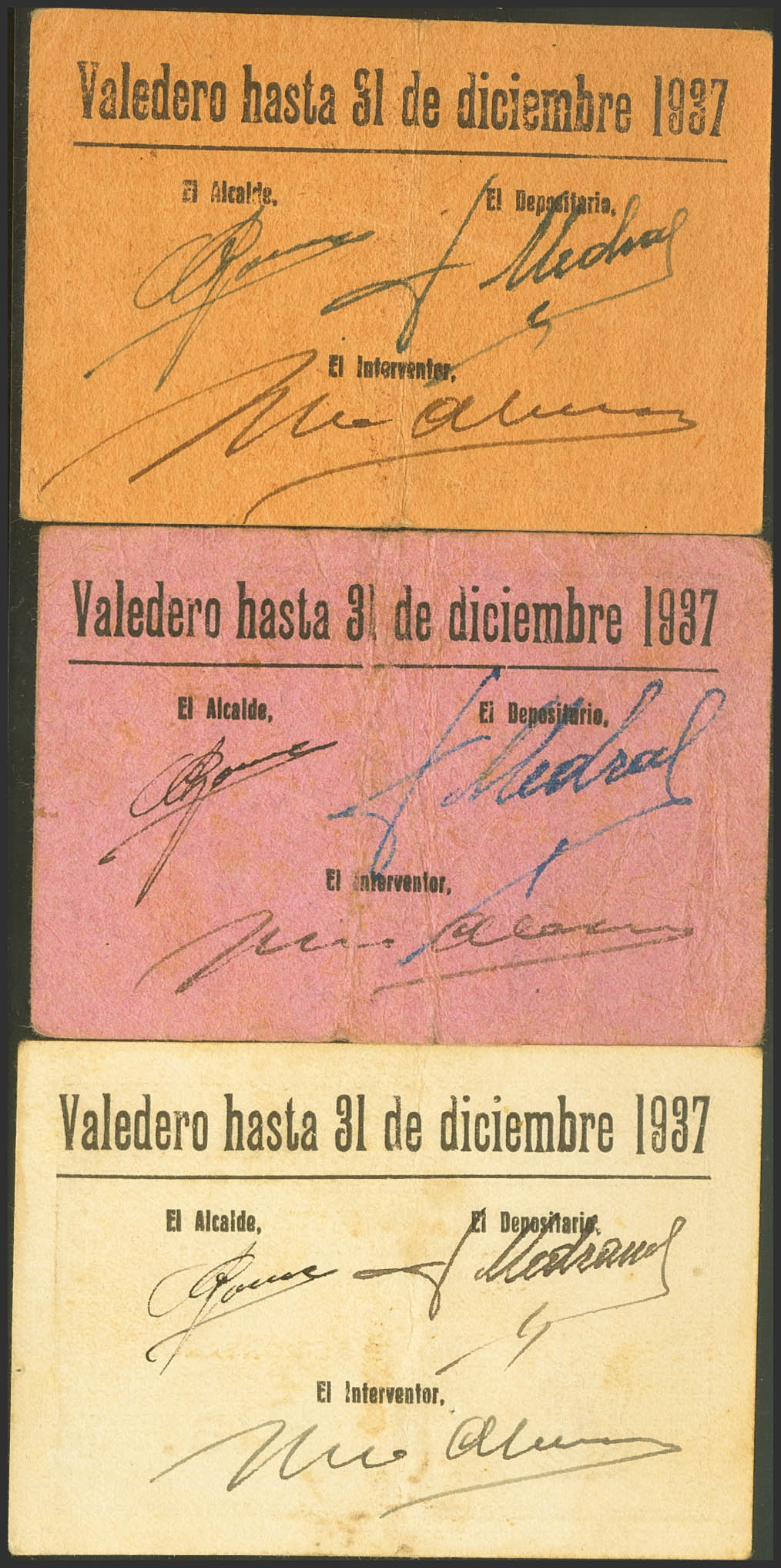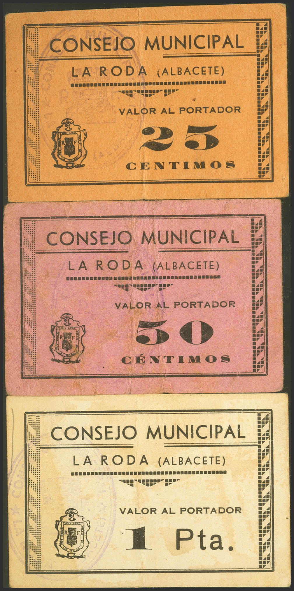 English LA RODA (ALBACETE). 25 Cents, 50 Cents and 1 Peseta. (1937ca). (González:4538/40). Very rare complete series. Very Fine-.