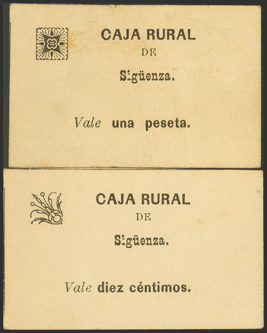 SIGÜENZA (GUADALAJARA). 10 Cents and 1 Peseta. (1937ca). (González: 4858, 4860). Very rare, to give us an idea of the rarity, the 1 pts in the González catalog is not photographed. Uncirculated-.