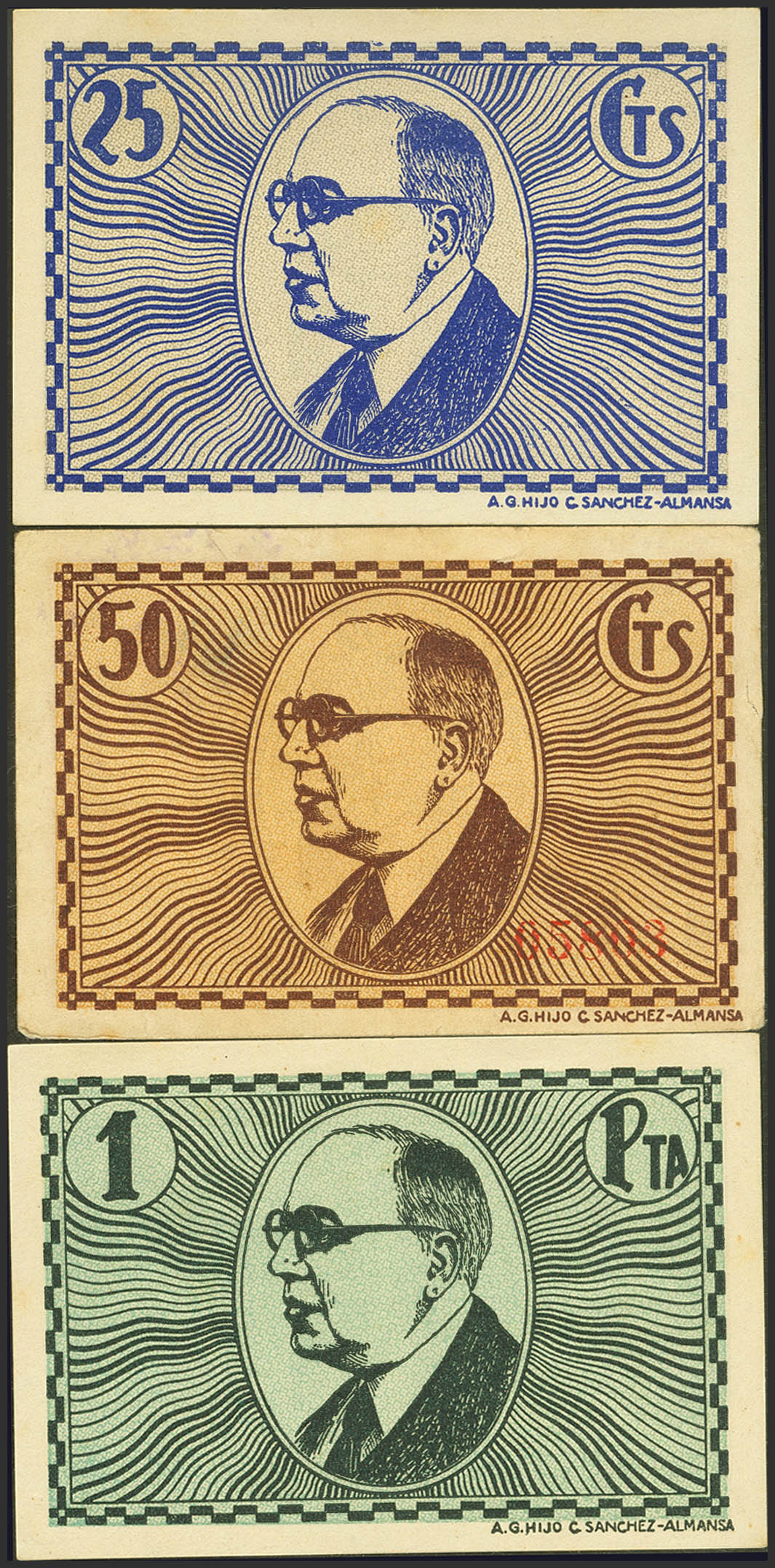 English VILLAFRANCA DE LOS CABALLEROS (TOLEDO). 25 Cents, 50 Cents and 1 Peseta. (1937ca). (González: 5521/23). Complete series. Uncirculated/Good Extremely Fine+.