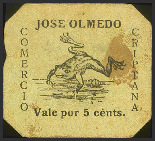 5 Cent Voucher from the Criptana Commerce (Ciudad Real) by Jose Olmedo. Very Fine-.