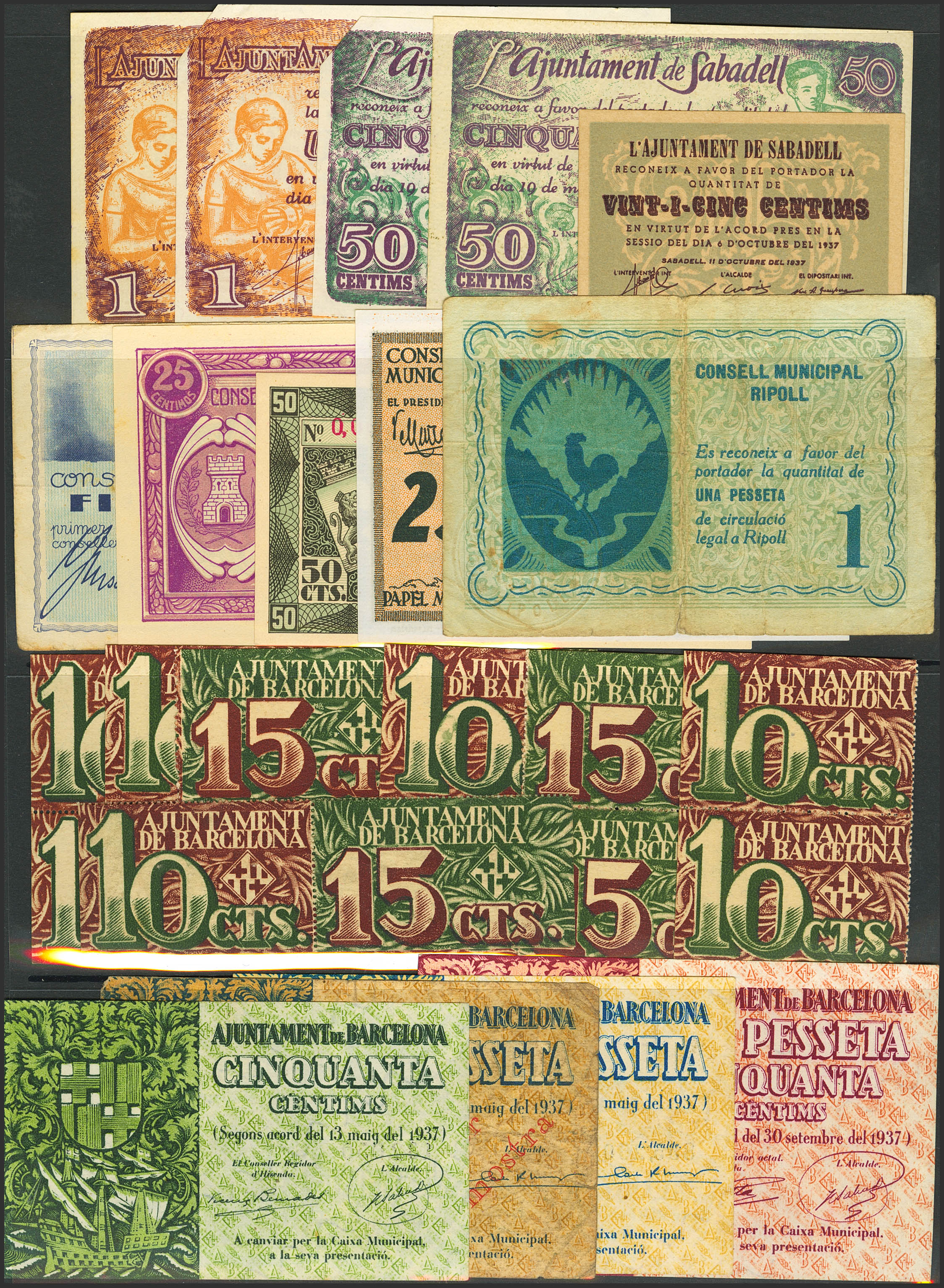 Set of more than 15 notes from the Civil War, most of them Catalan, in various qualities. TO EXAMINE.