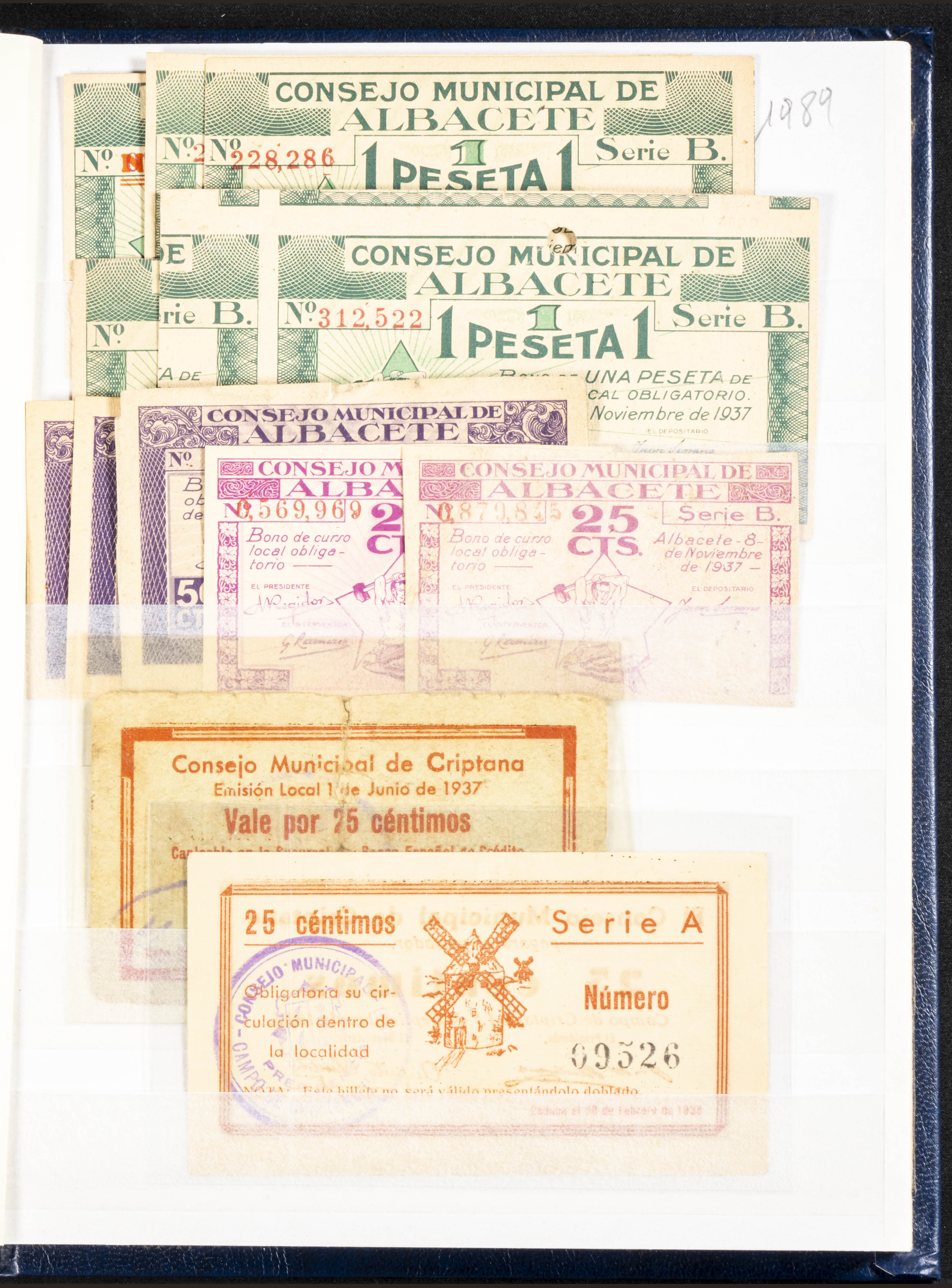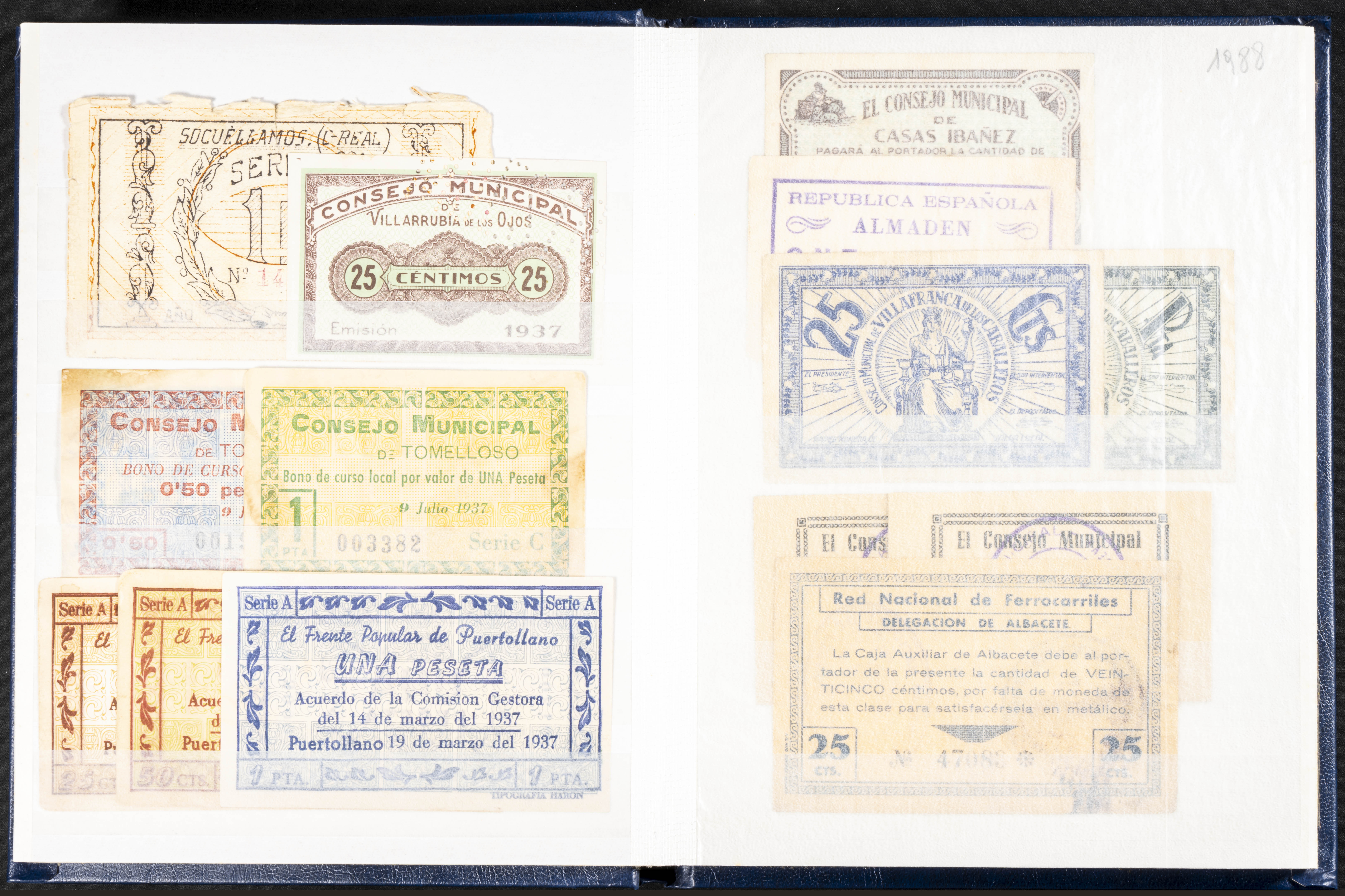 Set of more than 60 notes from the Civil War, it does not include Catalan notes, some are fantasies (ideal for study), it also includes 4 from supply services and 2 from the Bank of Spain from the Bilbao branch. TO EXAMINE.
