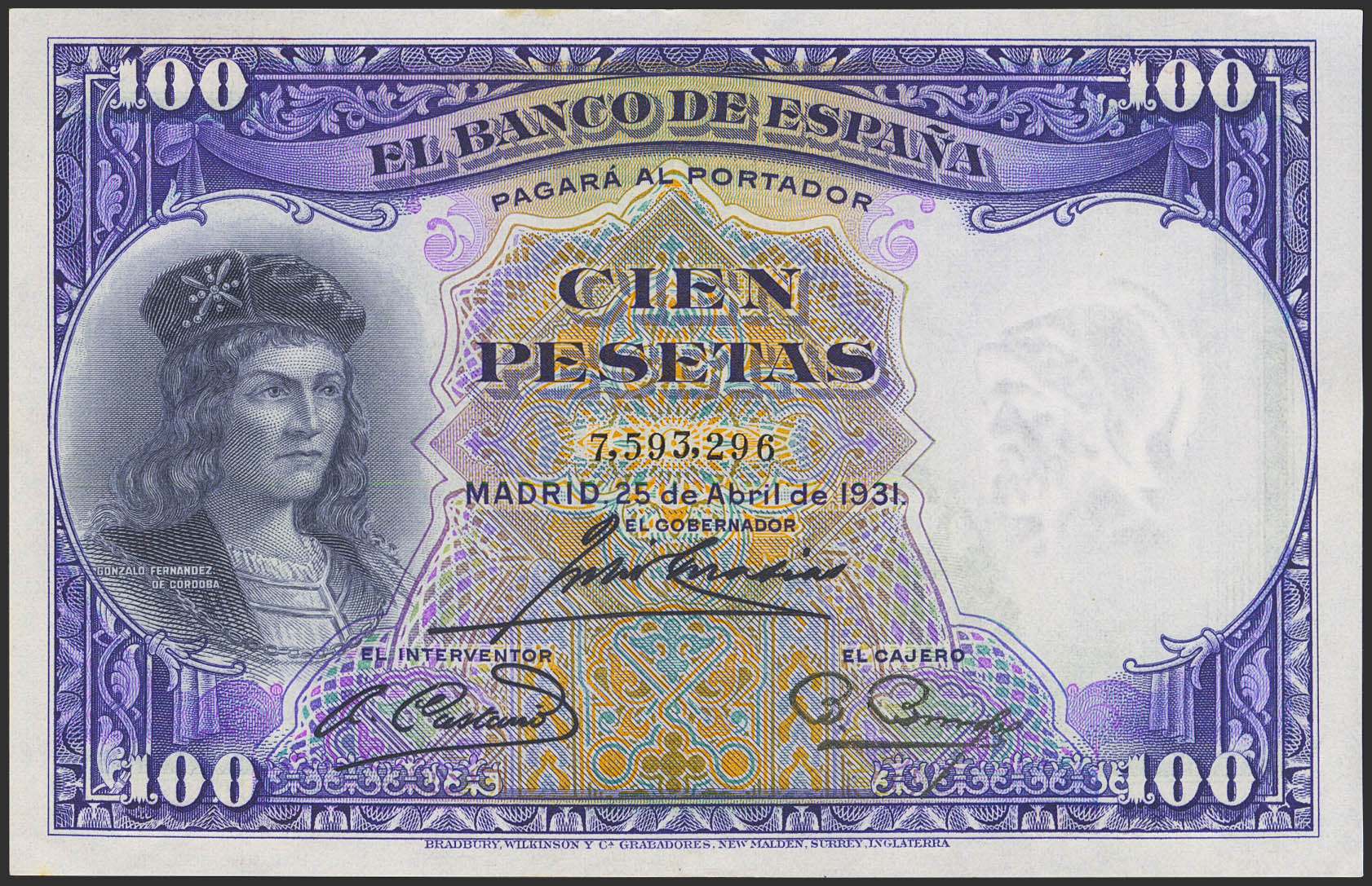 100 Pesetas. April 25, 1931. No series. (Edifil 2023: 360). It retains all its original finish. Uncirculated.