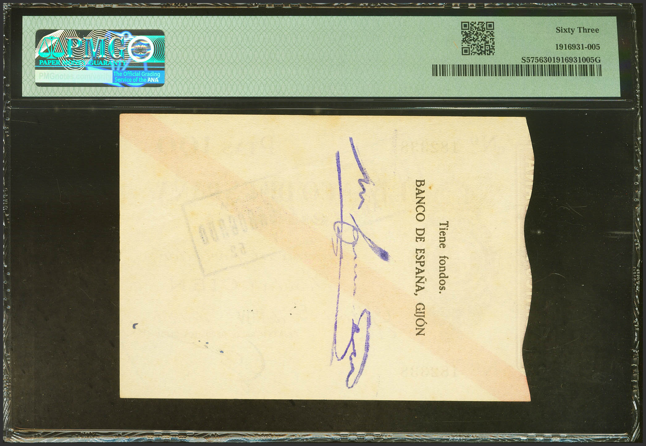 100 Pesetas. November 5, 1936. Gijón Branch. (Edifil 2023: 384, Pick: S575). Very rare in this exceptional quality. Uncirculated. PMG63 encapsulation.