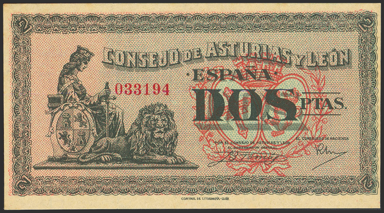 2 Pesetas. 1937. Asturias and León. No serie. (Edifil 2021: 398). Original sizing. Uncirculated-.