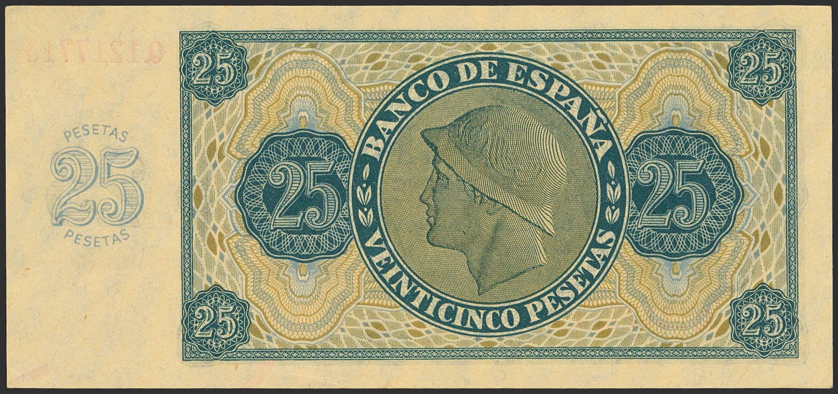 25 Pesetas. November 21, 1936. Series Q. (Edifil 2023: 419a). It retains part of its original finish. Good Extremely Fine.