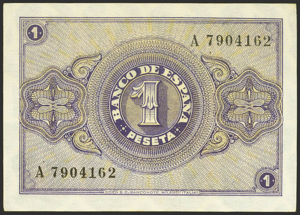 1 Pesetas. February 28, 1938. Series A. (Edifil 2023: 427). Unusual, original sizing. Uncirculated-.