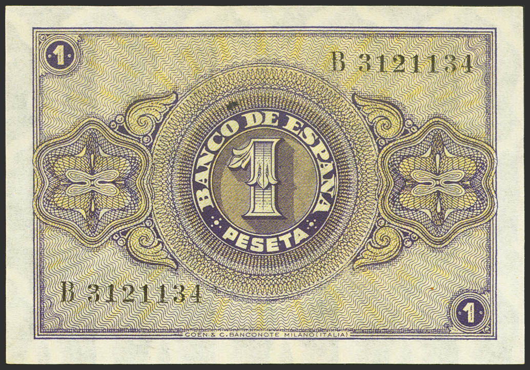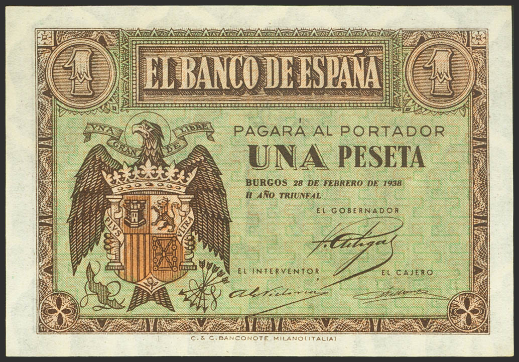 1 Peseta. February 28, 1938. Series B. (Edifil 2021: 427a). Original sizing. Uncirculated.