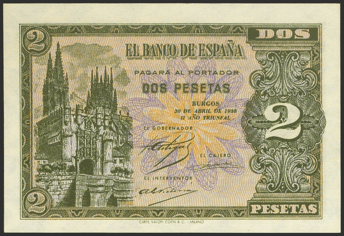 2 Pesetas. April 30, 1938. Series C. (Edifil 2021: 429a). It retains all its original finish. Uncirculated-.