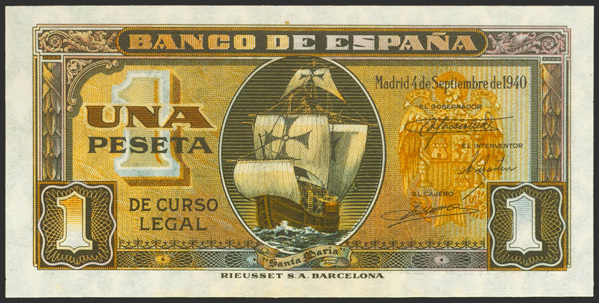 1 Peseta. September 4, 1940. Series A. (Edifil 2023: 442a). Original sizing. Uncirculated.