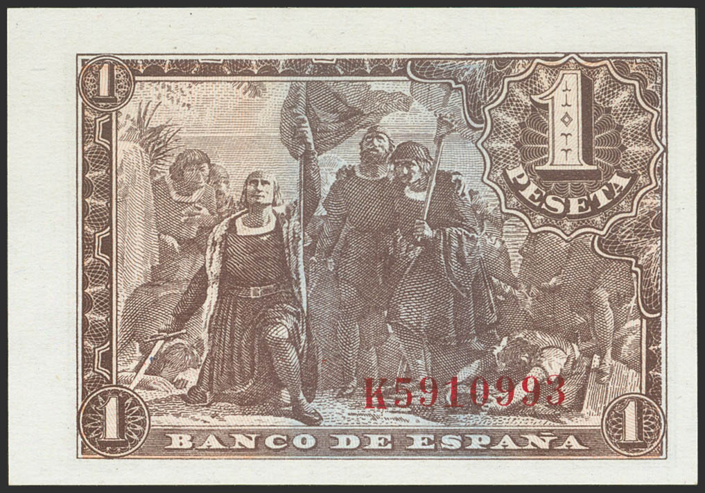 1 Peseta. May 21, 1943. Series K. (Edifil 2023: 447a). Original sizing. Uncirculated.