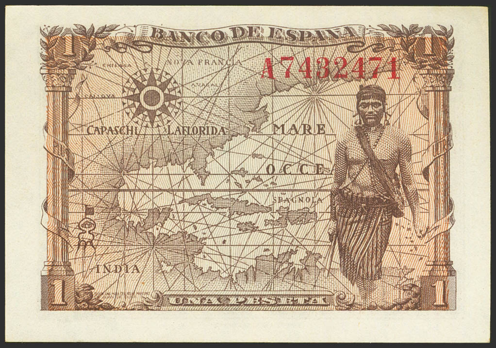 1 Peseta. June 15, 1945. Series A. (Edifil 2021: 448a). Original sizing. Uncirculated-.