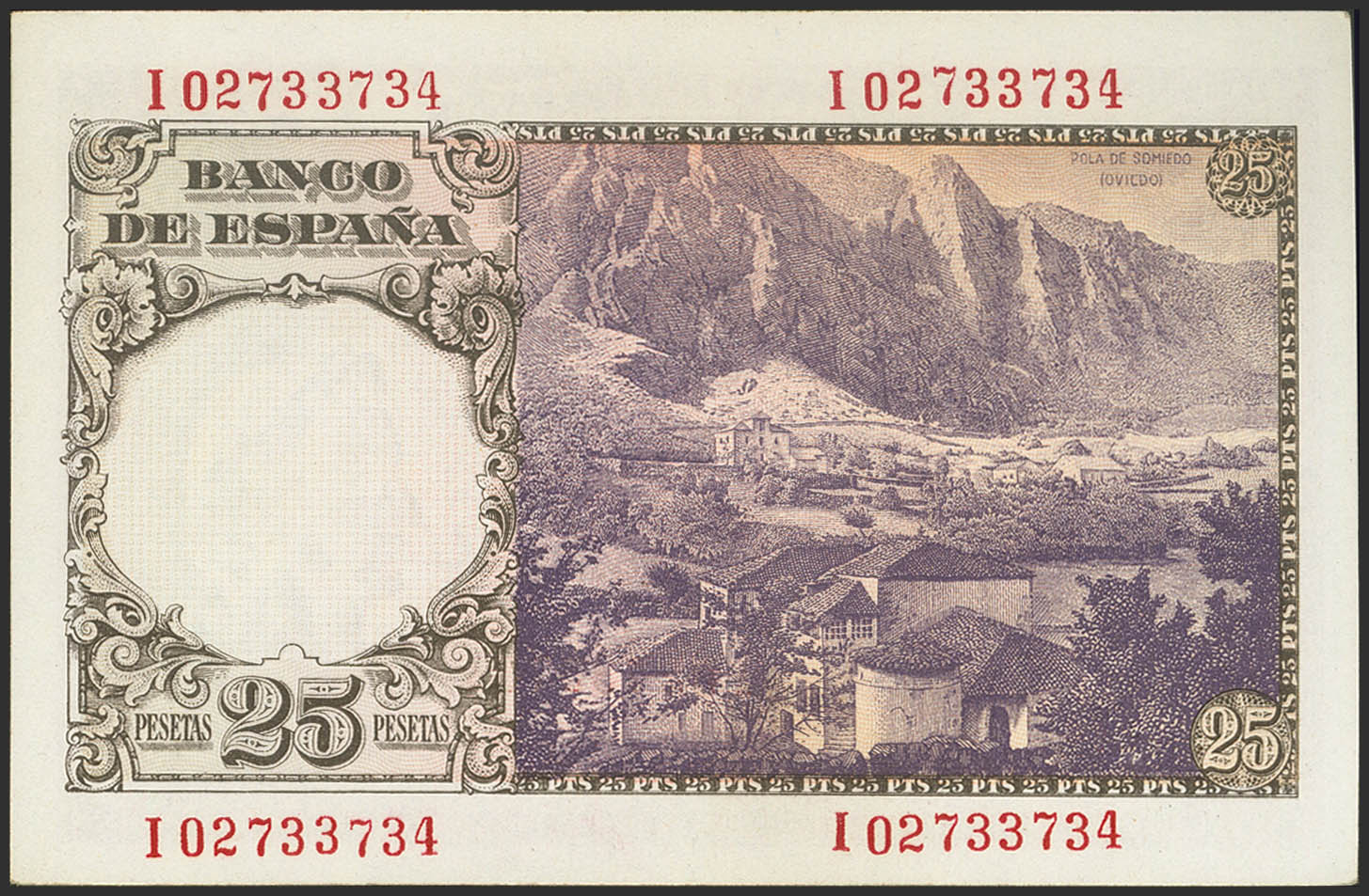 25 Pesetas. February 19, 1946. Series I. (Edifil 2023: 450a). Original sizing. Uncirculated.