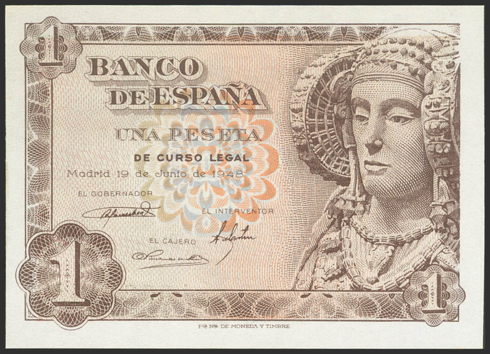 English 1 Peseta. June 19, 1948. Series A. (Edifil 2023: 457a). Original sizing. Uncirculated.