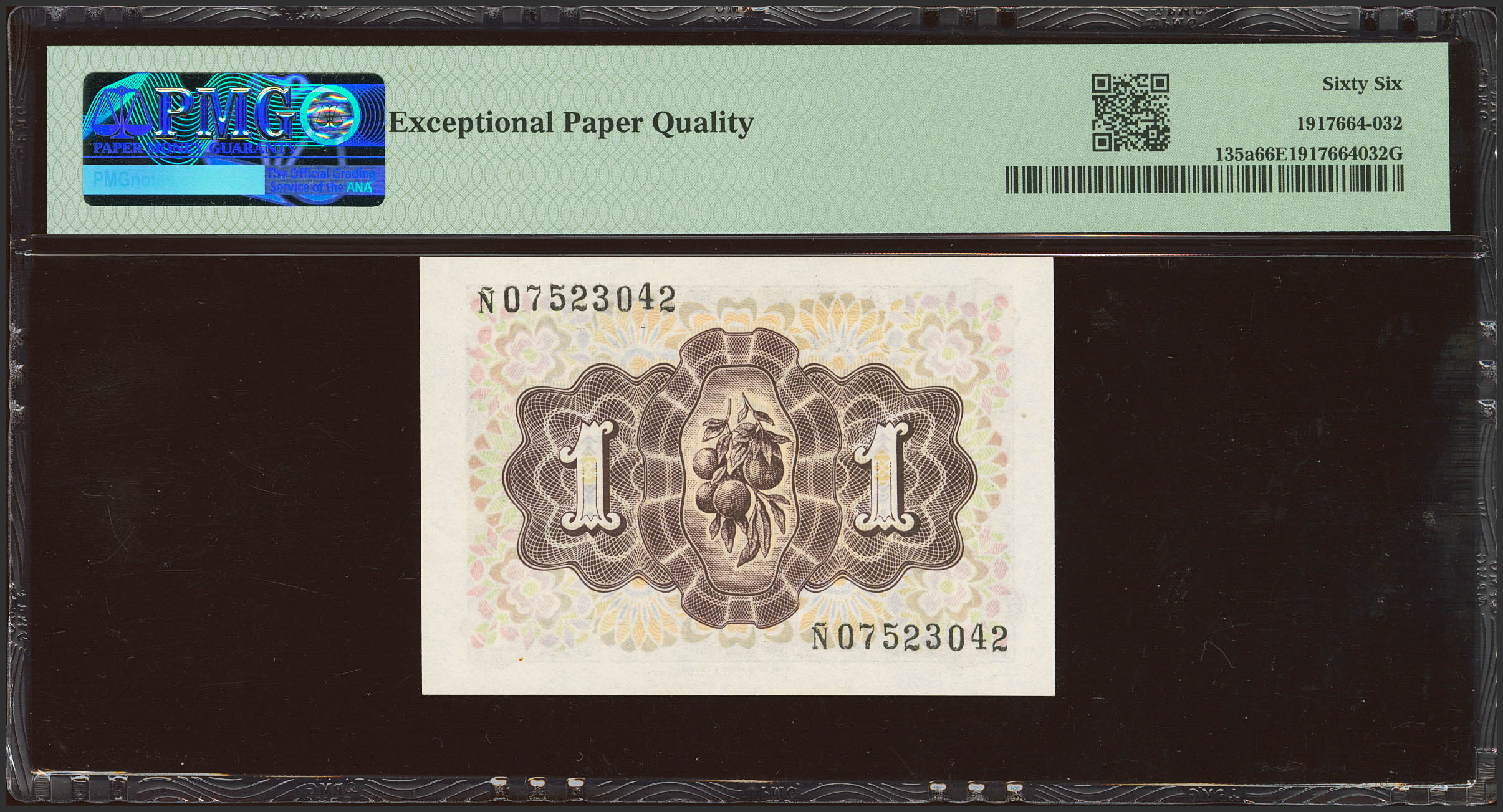 1 Peseta. June 19, 1948. Series Ñ. (Edifil 2023: 457a, Pick: 135a). Original sizing. Uncirculated. PMG66EPQ package.