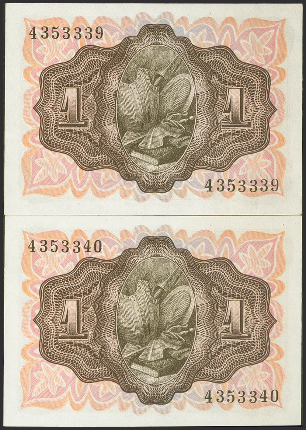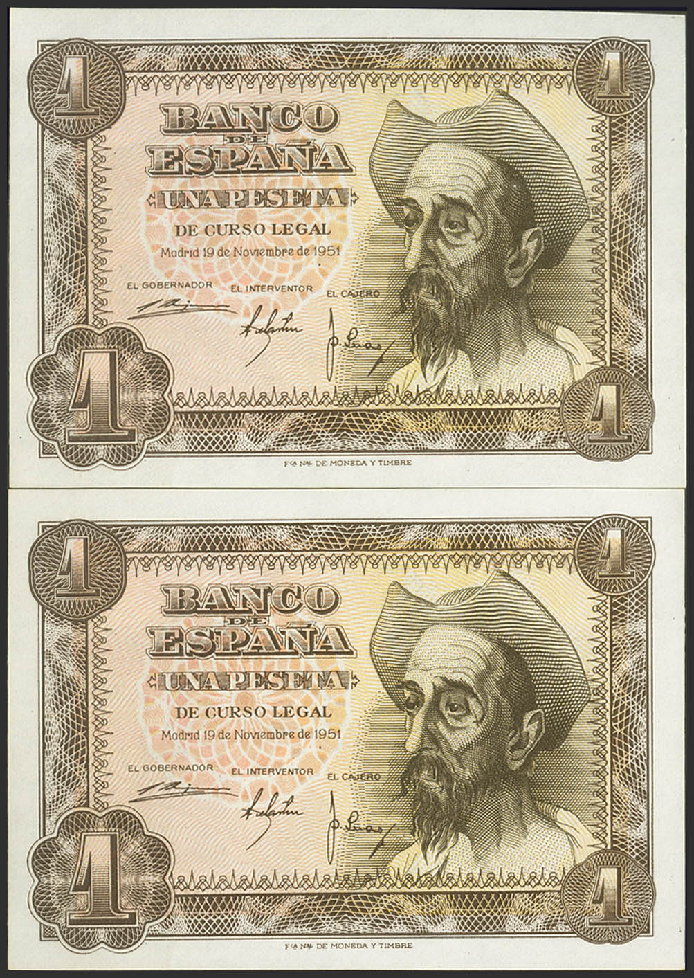 1 Peseta. November 19, 1951. Correlative couple. No serie. (Edifil 2023: 461). Original sizing. Uncirculated-.