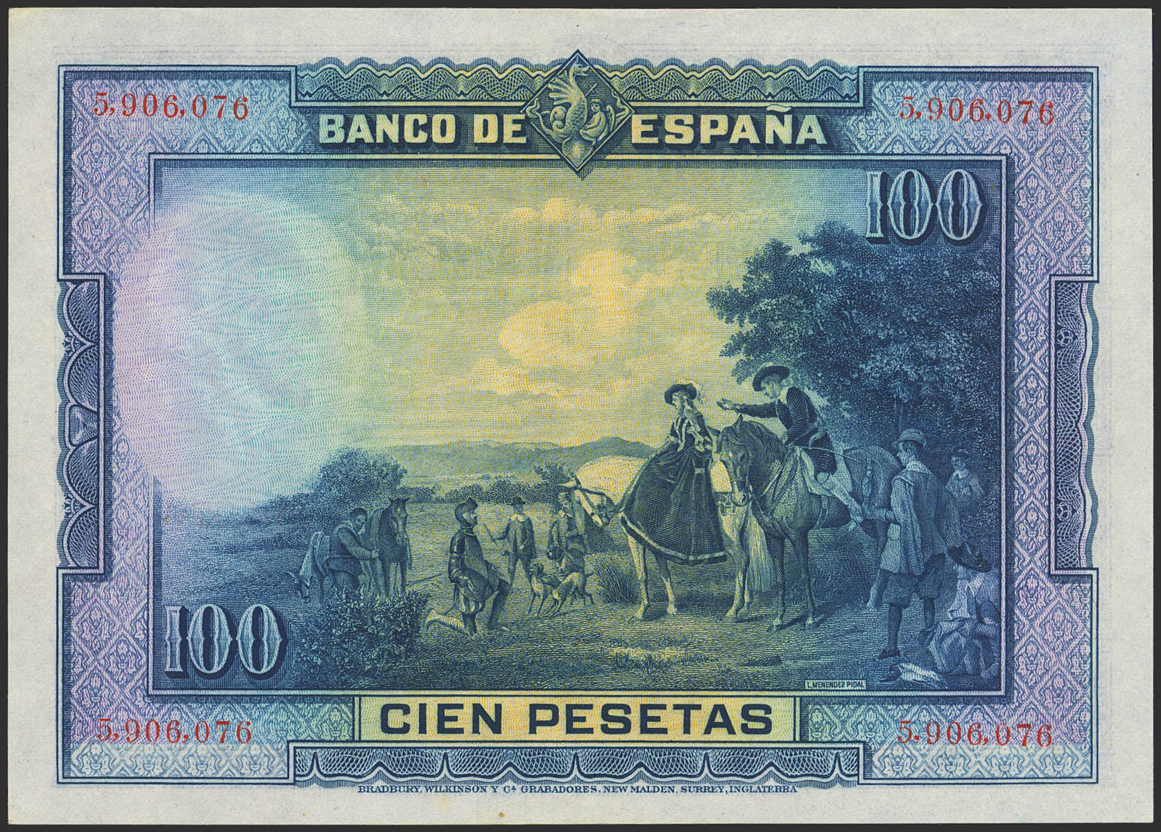100 Pesetas. August 15, 1928. No series. (Edifil 2023: 355). It retains much of its original finish. Good Extremely Fine++.