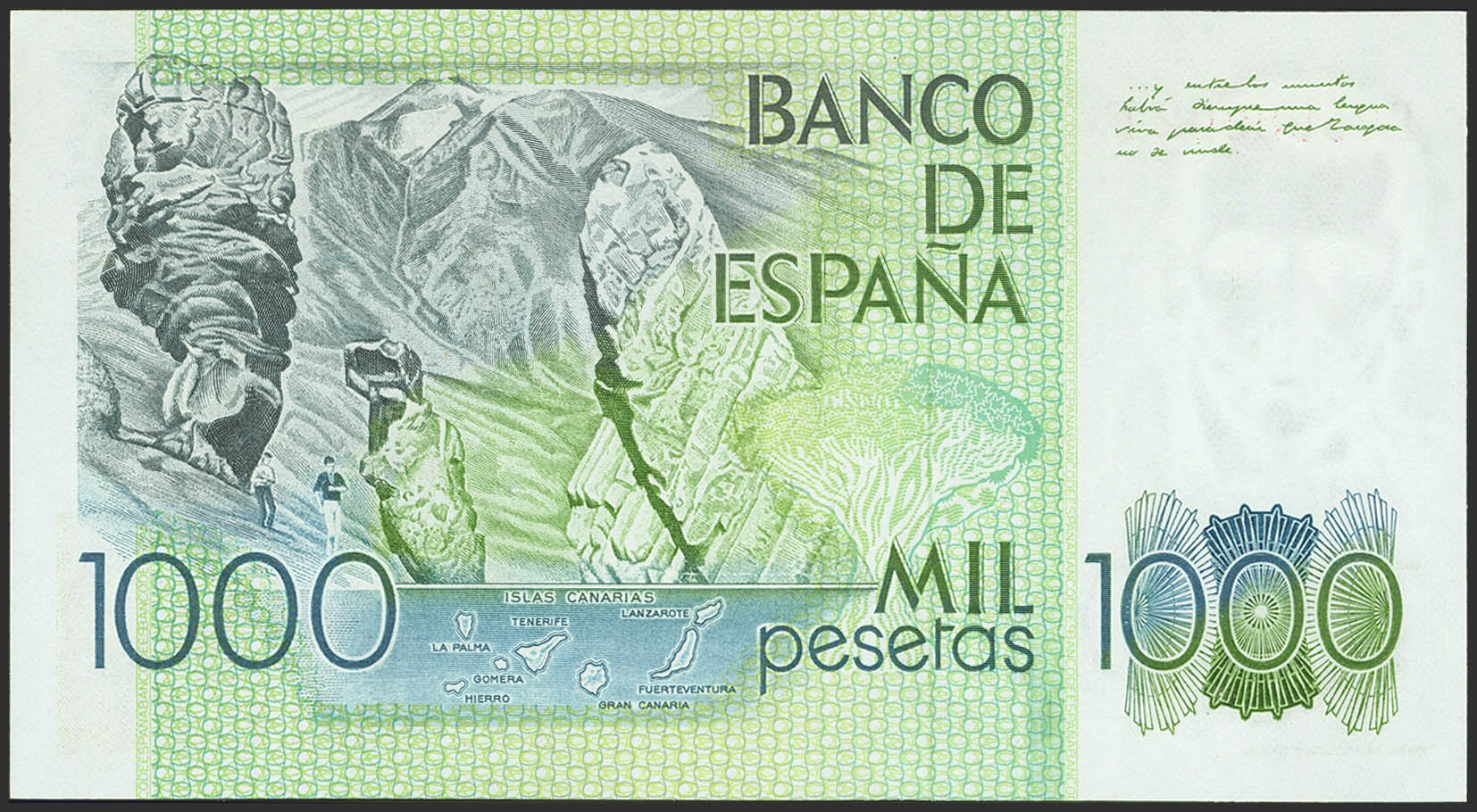 1000 Pesetas. October 23, 1979. RF Series. (Edifil 2023: 477a). With natural undulation from the manufacturing process (this is the only reason for "removing" the Uncirculated). Good Extremely Fine++.